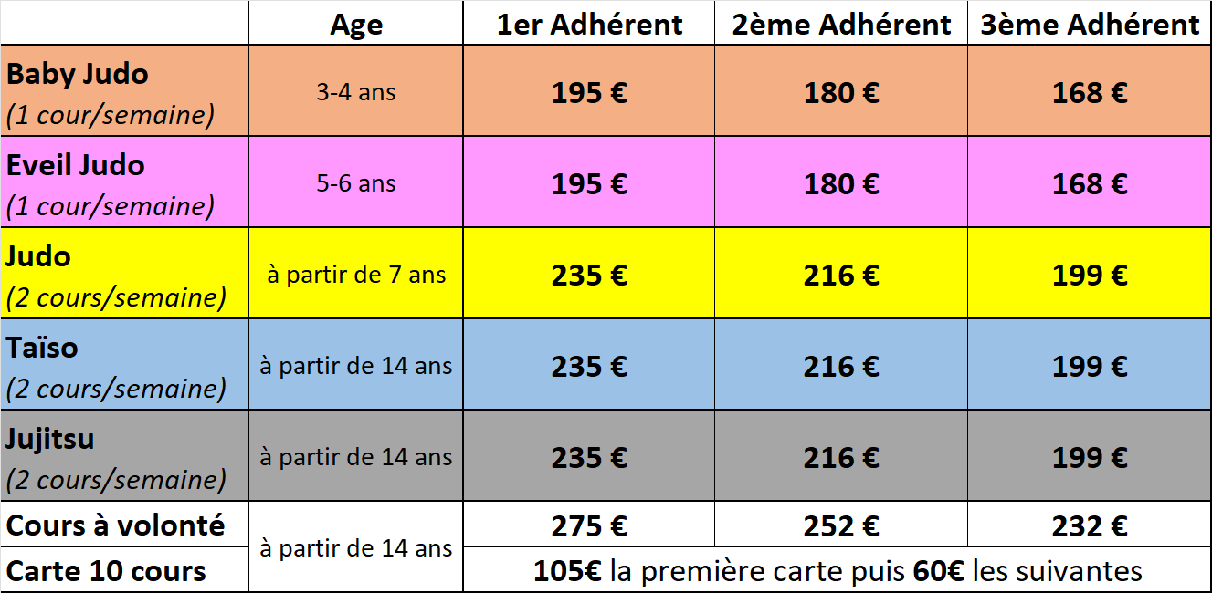 *:La Fédération a appliqué une augmentation de 5 € sur le prix des licences. Afin de soutenir ses adhérents, le club a décidé de maintenir les mêmes tarifs de cotisation que l’an dernier, quel que soit votre discipline.